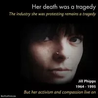 Jill Phipps was a British animal rights activist who was crushed to death during an animal rights protest in Baginton, Warwickshire, England, when she deliberately stepped in front of a lorry transporting live veal calves heading for continental Europe via Coventry Airport.