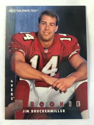 James David Druckenmiller, Jr. is a former American football quarterback. In his career, Druckenmiller played for the San Francisco 49ers, Miami Dolphins, and Indianapolis Colts of the National Football League, as well as the Memphis Maniax of the XFL and the Los Angeles Avengers of the Arena Football League.