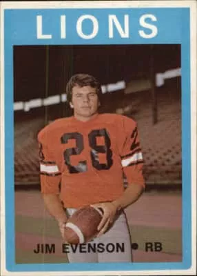 Jim Evenson was a running back who played seven seasons in the Canadian Football League for the British Columbia Lions and the Ottawa Rough Riders. Evenson won the Eddie James Memorial Trophy in 1971. He was a part of the Rough Riders 1973 Grey Cup winning team. Evenson played college football at University of Oregon.