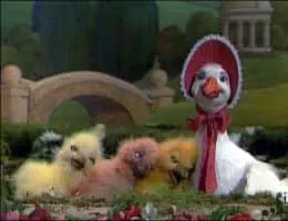 Mother Goose tells her goslings the stories behind famous nursery rhymes.