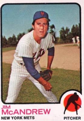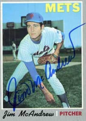 James Clement McAndrew is a Major League Baseball pitcher from 1968 to 1974; he pitched for the New York Mets for his first six years, and the San Diego Padres in the last. McAndrew started twelve games for the Mets in 1968; the Mets had a 4–8 record in those games, and his record was 4–7.
