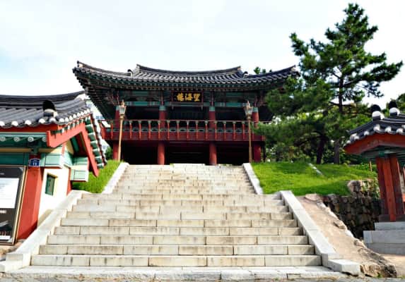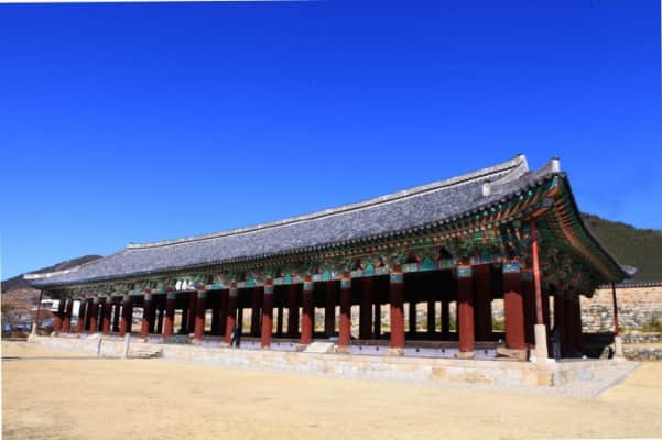 Jinnamgwan Hall is a historical building in the South Korean city Yeosu. The wooden structure consists of a roof, that is supported by 68 columns. It is decorated with carved lotus buds, dragon heads, and Dancheong paintwork. Jinnamgwan Hall is 75 m long and 14 m tall.