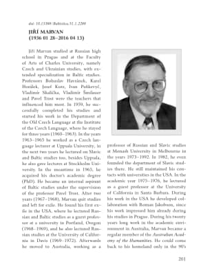 Jiri Marvan is the author of some fifty studies in Slavic and Baltic linguistics, including the monograph Modern Lithuanian Declension. Professor of Slavic languages at Monash University, Australia, he took his PhD at Charles University, Prague.