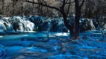 Jiuzhaigou National Park is a network of valleys in China’s Sichuan province. In the northern Shuzheng Valley, Nuorilang Waterfall cascades from the edge of a large tree-fringed lake. The Zharu Monastery is a place of worship for the park’s Tibetan villages. In the south, Rize Valley’s mountains are covered with ancient forests. Fallen trees are scattered on the bottom of the striking, multicolored Five Flower Lake. ― Google