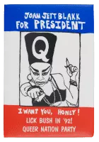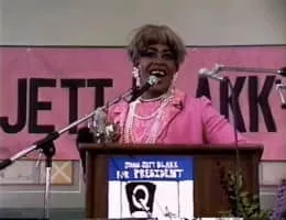 Joan Jett Blakk is the drag persona of performer Terence Smith. Smith is an African-American actor, writer and political candidate. Blakk first garnered a measure of national attention when he ran for President of the United States in 1992.