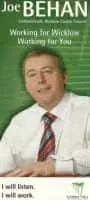 Joe Behan is an Irish politician. He served as a Teachta Dála for the Wicklow constituency from 2007 to 2011. He was elected as a TD at the 2007 general election.