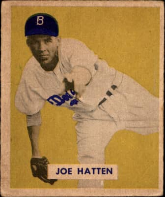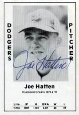 Joseph Hilarian Hatten was an American professional baseball pitcher who appeared in 233 games pitched in Major League Baseball for the Brooklyn Dodgers and Chicago Cubs from 1946 to mid-1952. Born in Bancroft, Iowa, he threw left-handed, batted right-handed and was listed as 6 feet tall and 176 pounds.