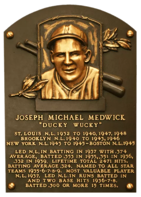 Joseph Michael Medwick, nicknamed "Ducky" and "Muscles", was an American Major League Baseball player. A left fielder with the St. Louis Cardinals during the "Gashouse Gang" era of the 1930s, he also played with the Brooklyn Dodgers, New York Giants, and Boston Braves.
