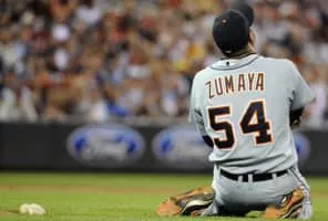 Joel Martin Zumaya is a former American professional baseball pitcher. He pitched in Major League Baseball for the Detroit Tigers from 2006 through 2010.