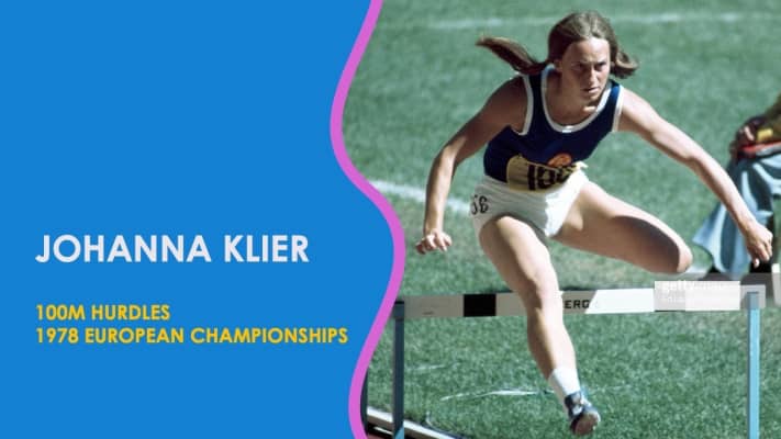 Johanna Klier is a former East German hurdler and Olympic gold medallist. Under her maiden name, she won the gold medal at the 1976 Summer Olympics in the 100 m hurdles. Under her married name, she won the silver medal 1980 Summer Olympics in Moscow, again in the 100 m hurdles.