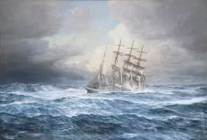 Johannes Holst was a German artist known for his highly realistic paintings of ships in the open ocean. Capturing varying weather conditions, Holst's detailed depictions of waves and clouds made his work highly sought after during his own lifetime.