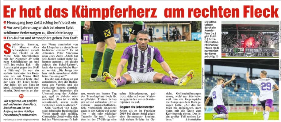 Name in home country: Johannes Peter Vincenzo Zottl Date of birth: Mar 4, 1994 Age: 29 Height: 1,80 m Citizenship: Germany Position: Attack Foot: both Current club: SV Austria Salzburg Joined: Jul 15, 2021 Contract expires: -