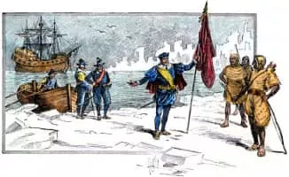 In may 1497. Cabot left england with a small fleet. Consisting of the shpis matthew. Swan. And gabriel. He sailed westward acrsos the atlantic ocean. Adn after a few weeks. He reached the coast of newfoundland and labrador. He made landfall at what is now known as cape bonavista. Claiming the land for king henry vii. Cabot hten sailed southward along the coast of north america. Eventually reaching a point near what is now known as cape hatteras. North carolina.