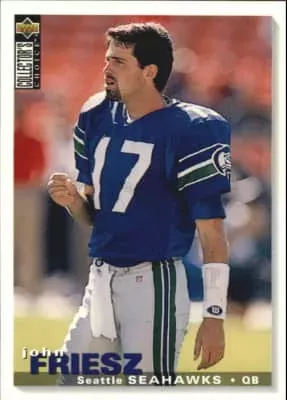 John Melvin "Deep" Friesz is a former professional football player, a quarterback in the National Football League for four teams. Selected in the 1990 NFL Draft by the San Diego Chargers, he later played for the Washington Redskins, Seattle Seahawks, and New England Patriots.