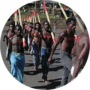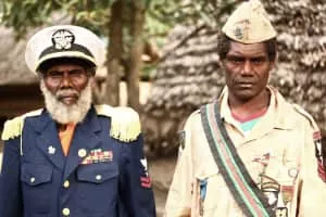 John Frum is a figure associated with cargo cults on the island of Tanna in Vanuatu. He is often depicted as an American World War II serviceman who will bring wealth and prosperity to the people if they follow him. He is sometimes portrayed as black, sometimes as white.