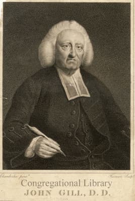 John Gill was an English Baptist pastor, biblical scholar, and theologian who held to a firm Calvinistic soteriology. Born in Kettering, Northamptonshire, he attended Kettering Grammar School where he mastered the Latin classics and learned Greek by age 11.