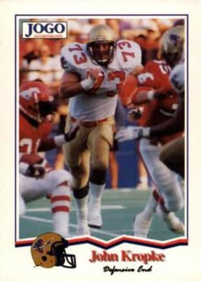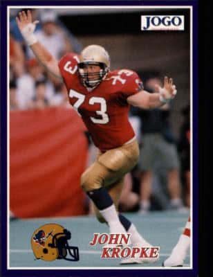 John Kropke is a former American football defensive tackle who played nine seasons in the Canadian Football League with the Ottawa Rough Riders, Winnipeg Blue Bombers and Saskatchewan Roughriders. He played college football at Illinois State University.