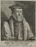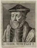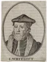 John Whitgift was the Archbishop of Canterbury from 1583 to his death. Noted for his hospitality, he was somewhat ostentatious in his habits, sometimes visiting Canterbury and other towns attended by a retinue of 800 horses. Whitgift's theological views were often controversial.