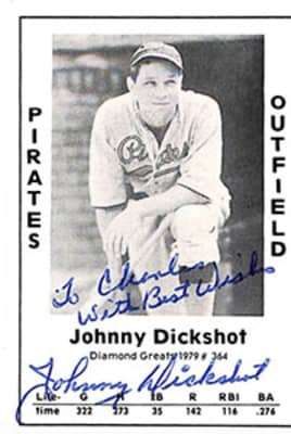 John Oscar Dickshot, nicknamed "Ugly" Johnny Dickshot, was an American professional baseball left fielder. He played in Major League Baseball for the Pittsburgh Pirates, the New York Giants, and the Chicago White Sox.