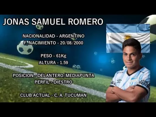 Jonás Romero is an Argentine professional footballer who plays as a forward for Argentine Primera División side Atlético Tucumán.