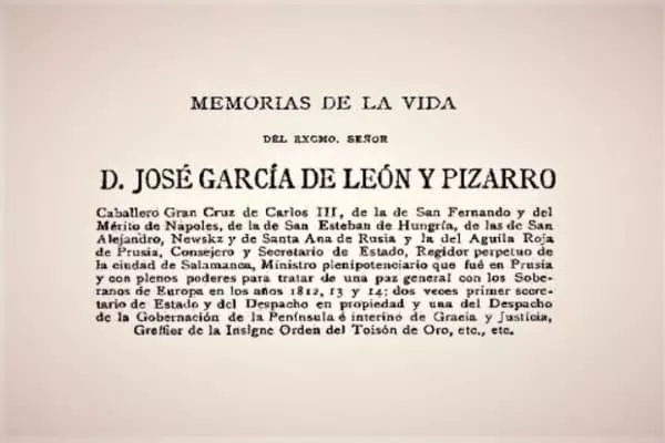 José García de León y Pizarro was Minister of State of Spain from 30 October 1816 to 14 September 1818. He married Maria Mercedes Avila and had a son Rafael Garcia.