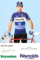 José Luis Laguía Martínez is a retired Spanish road cyclist and climber. He won a record five mountains classifications at the Vuelta a España during his career. As a faithful Domestique of Pedro Delgado he followed his leader to PDM–Ultima–Concorde when he left Reynolds.