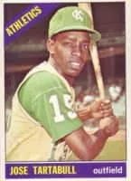 José Milages Tartabull Guzmán is a Cuban former professional baseball outfielder. He played in Major League Baseball from 1962 to 1970 for the Kansas City / Oakland Athletics and Boston Red Sox.