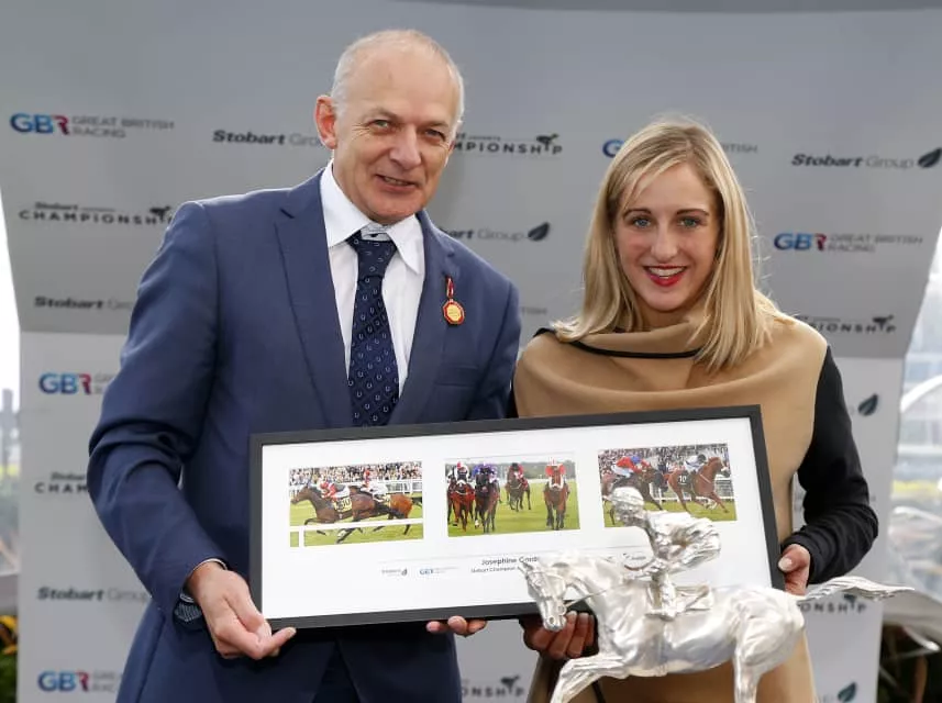 Josephine Gordon is a British jockey who competes in Flat racing. In 2016 Gordon won the British flat racing Champion Apprentice title, becoming only the third female jockey to win that title after Hayley Turner and Amy Ryan.