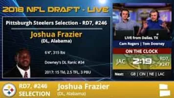 Joshua Frazier is a former American football nose tackle. He played college football at Alabama. He was drafted by the Pittsburgh Steelers in the seventh round of the 2018 NFL Draft.