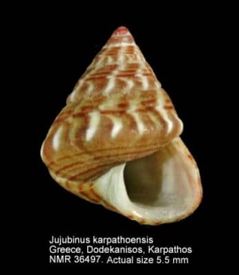 Jujubinus karpathoensis is a species of sea snail, a marine gastropod mollusk in the family Trochidae, the top snails. Like all other trochids, these snails have coiled shells in the adult stage.