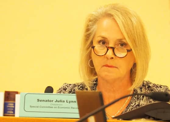 Julia Lynn is a Republican member of the Kansas Senate, representing the 9th District since 2006. On December 3, 2012, she was elected by her Republican colleagues as Assistant Majority Leader, with 22 of 32 votes. It was the first time Senate Republicans conducted leadership elections in Senate chambers.