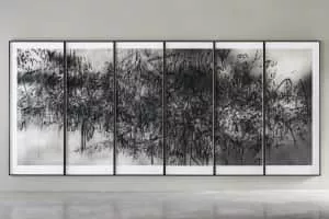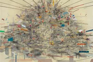 Julie Mehretu is an Ethiopian American contemporary visual artist, known for her multi-layered paintings of abstracted landscapes on a large scale. Her paintings, drawings, and prints depict the cumulative effects of urban sociopolitical changes. Mehretu is included in Time's 100 Most Influential People of 2020.