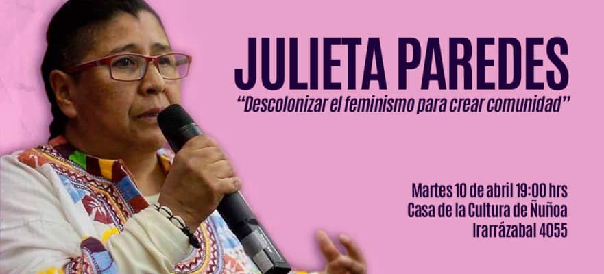 Julieta Paredes Carvajal is an Aymara Bolivian poet, singer-songwriter, writer, graffiti artist, anarchist and decolonial feminist activist. In 2003 she began Mujeres creando comunidad out of the activism of community feminism.