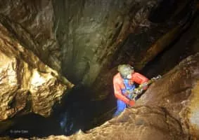 Juniper Gulf is a pit cave in on the side of Ingleborough in Yorkshire, England. It is a popular single rope technique trip for cavers, especially known for its final 50-metre pitch.