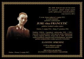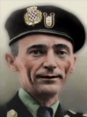 Jure Francetić was a Croatian Ustaša Commissioner for the Bosnia and Herzegovina regions of the Independent State of Croatia during World War II, and commander of the 1st Ustaše Regiment of the Ustaše Militia, later known as the Black Legion. In both roles he was responsible for the massacre of Bosnian Serbs and Jews.