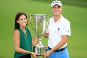 Justin Louis Thomas is an American professional golfer who plays on the PGA Tour and is former World Number One. In 2017, Thomas experienced a breakout year, winning five PGA Tour events and the FedEx Cup championship. He has won two major golf championships, winning the PGA Championship in 2017 and 2022.