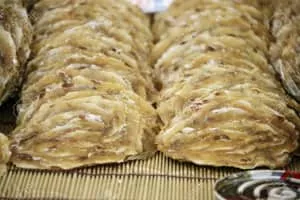 Jwipo is a traditional Korean pressed fish jerky sold as a street snack. Made from the filefish, it is dried, flattened and seasoned. Jwipo has a subtle sweet flavor. It is traditionally served hot, heated on a burner until it curls.