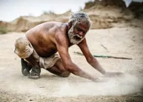 A blind old man and a young bank loan recovery agent fight for their survival.