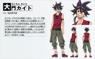 Daimon Kaito (大門カイトDaimon Kaito) is the main protagonist of Phi Brain: Kami no Puzzle. He is a current student of Root Academy, in his freshman year and holds the title of 'Einstein'. He is a childhood friend of Rook and is currently trying to stop him. He is also a contractor of the Armband of Orpheus.