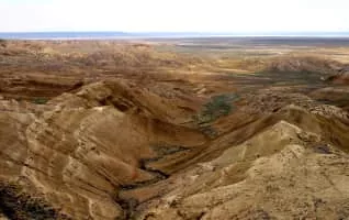 Karagiye is a 40 kilometres long karst trench close to the Caspian Sea. At approximately 132 metres below sea level it is the lowest point in Central Asia, Kazakhstan, and the former Soviet Union. It is also known as the "Karagiye Depression" and "Karagiye Mountain Trench".