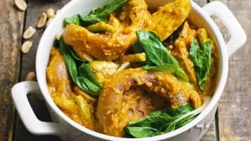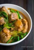 Kare-kare is a Philippine stew complemented with a thick savory peanut sauce. It is made from a variation base of stewed oxtail, pork hocks, calves feet, pig feet, beef stew meat, and occasionally offal or tripe. Kare-kare can also be made with seafood or vegetables.