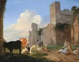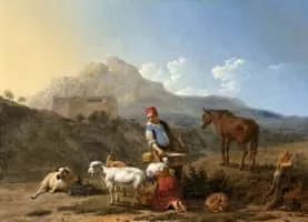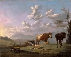 Karel Dujardin was a Dutch Golden Age painter. Although he did a few portraits and a few history paintings of religious subjects, most of his work is small Italianate landscape scenes with animals and peasants, and other genre scenes.