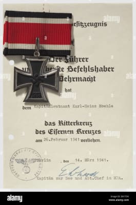 Karl-Heinz Moehle was a German U-boat commander of the Second World War. From September 1939 until retiring from front line service in June 1941, he sank 21 ships for a total of 93,197 gross register tons. For this he received the Knight's Cross of the Iron Cross, among other commendations.
