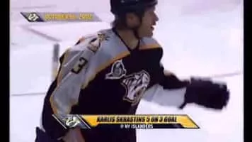 Kārlis Skrastiņš was a Latvian professional ice hockey player. Skrastiņš was drafted by the Nashville Predators of the National Hockey League in 1998 as a defenceman and spent twelve years in the league playing for the Predators, the Colorado Avalanche, the Florida Panthers, and the Dallas Stars.