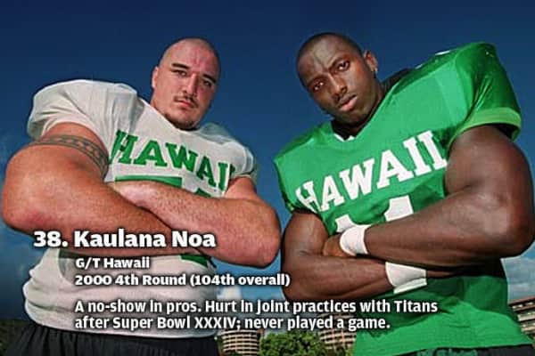 Kaulana Noa is a former an American football offensive guard. He was drafted by the St. Louis Rams in the fourth round of the 2000 NFL Draft with the 104th overall pick.