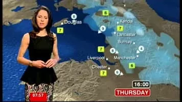 Kaye Forster is a freelance weather presenter based at BBC East Midlands weather hub. Her usual role is providing weekday breakfast and lunchtime and weekend forecasts for the East Midlands, West Midlands and North West regions following budget cuts as part of the BBC's Delivering Quality First in England program.