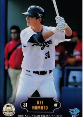 Kei Nomoto is a retired Japanese professional baseball outfielder who played for the Chunichi Dragons in Japan's Nippon Professional Baseball. He is now part of scouting department with the Dragons.