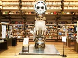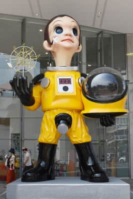 Kenji Yanobe is a Japanese contemporary artist known for his upbeat yet dystopian artwork. His sculpture simulates consumer products designed for survival after a nuclear holocaust. He is a professor at Kyoto University of Art and Design. He is also the director of Ultra Factory there.
