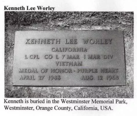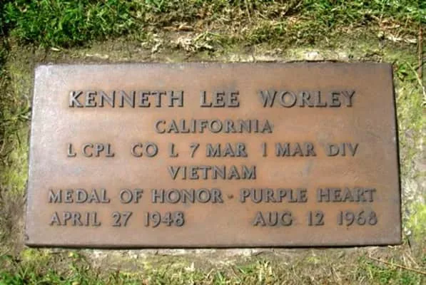 Kenneth Lee Worley was a United States Marine who posthumously received the Medal of Honor for heroism in Vietnam. On August 12, 1968, Worley sacrificed his own life when he threw himself on a grenade to save the lives of several fellow Marines.