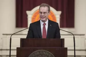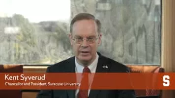 Kent D. Syverud is the 12th Chancellor and President of Syracuse University. He began his term of office on January 13, 2014. He was previously the dean at the Washington University School of Law and the dean and at Vanderbilt University Law School.